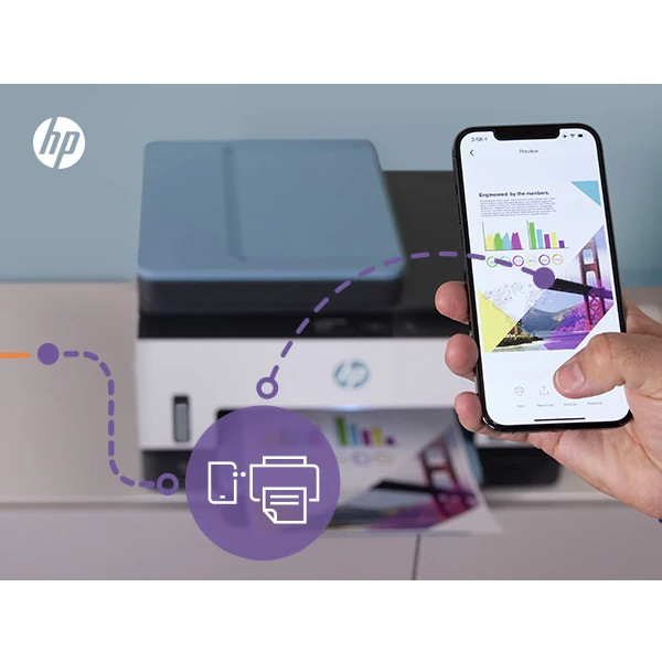 Impulse la productividad con la instalación móvil,[1] la impresión a doble cara, la interfaz táctil moderna y la función de envío de fax, para que pueda conectarse, trabajar e imprimir de forma intuitiva. Logre calidad destacada y valor gracias a la tinta original HP que se incluye en la caja y permite imprimir por hasta tres años.[2]